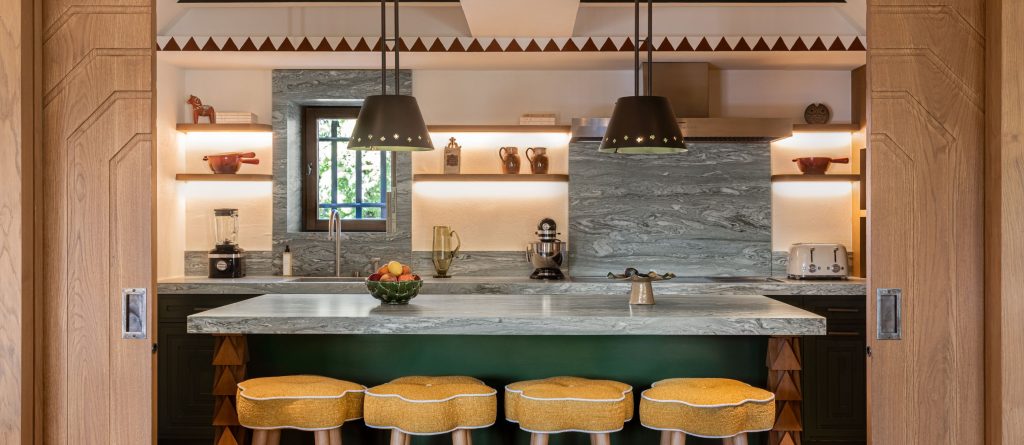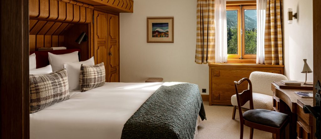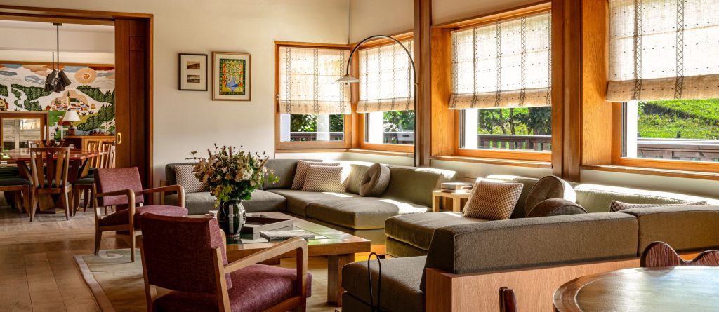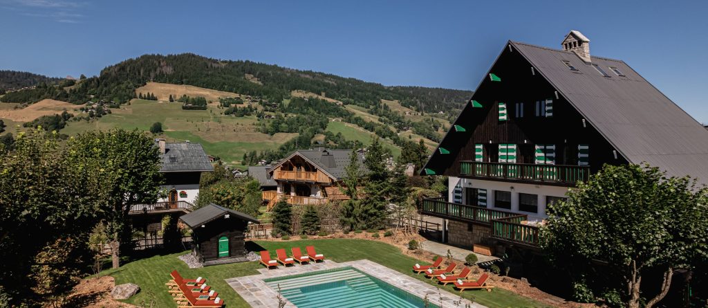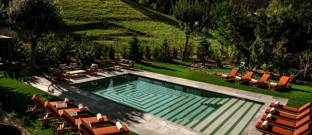Fully restored in 2025, this Art Deco chalet has two heated pools, a spa, stunning mountain views and the intimacy of a private home.