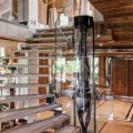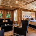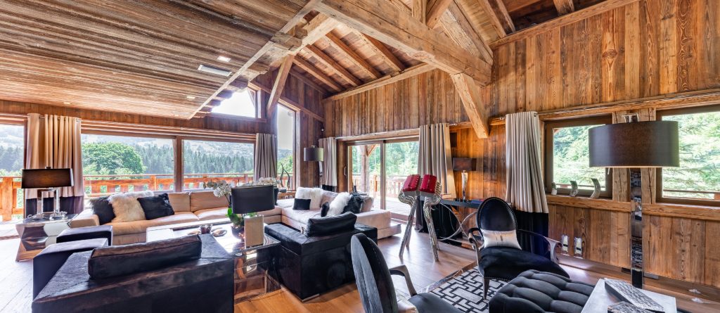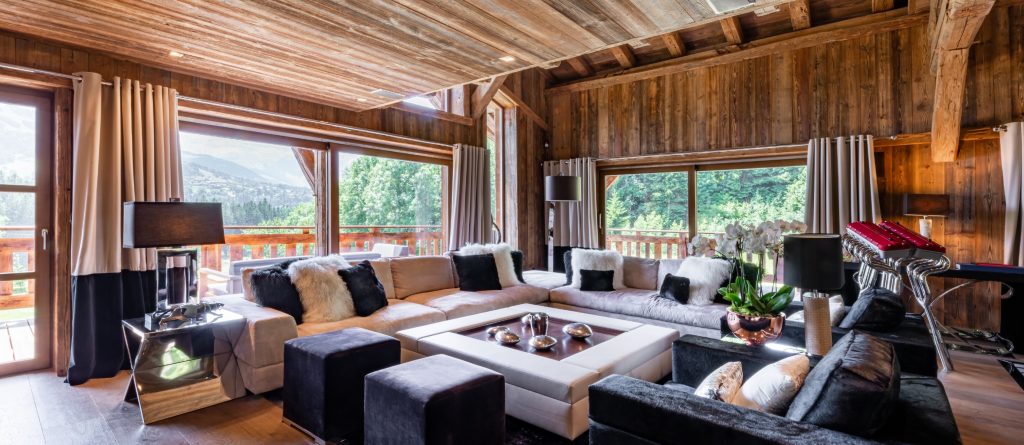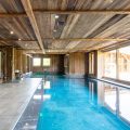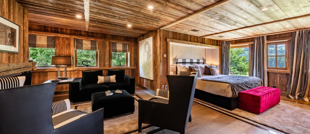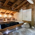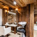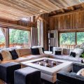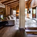 Giving a perfect alliance between woods and precious materials, this luxury cocoon provides the utmost cosy atmosphere for guests. Made-to-measure furniture and items decorated in beige and black, every room in this chalet preserves its own universe: bronze covered chimneys, leather padded bed-heads and marble bathrooms.