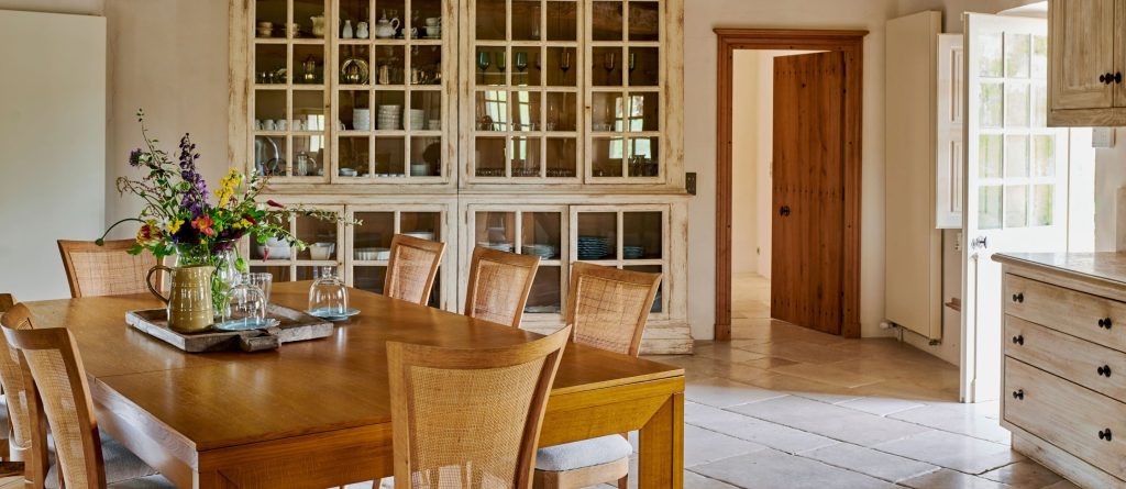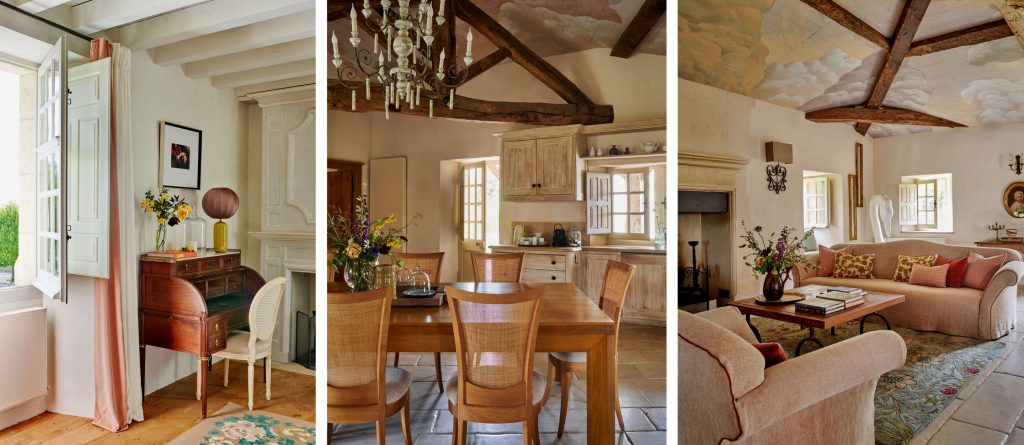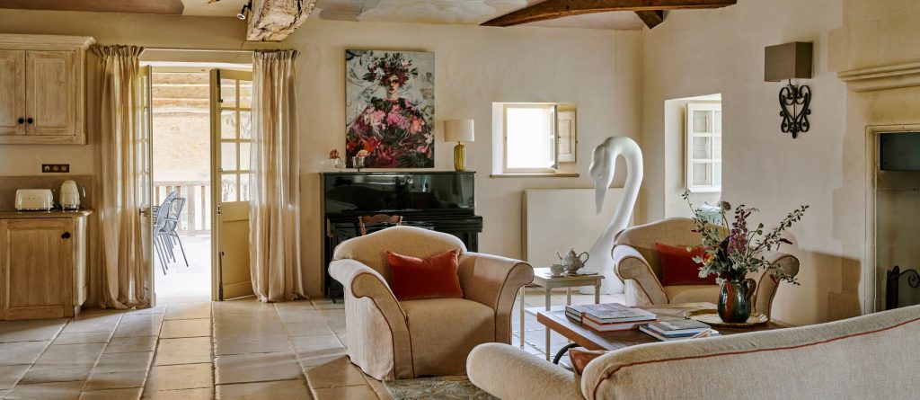 Set within 7 hectares of landscaped grounds, The Courtyard spans approximately 400 m² of beautifully restored living space and accommodates up to 12 guests across six luxuriously appointed double bedrooms. Interiors blend traditional French character with understated elegance, featuring stone floors, exposed beams, soft neutral tones, and carefully curated furnishings.