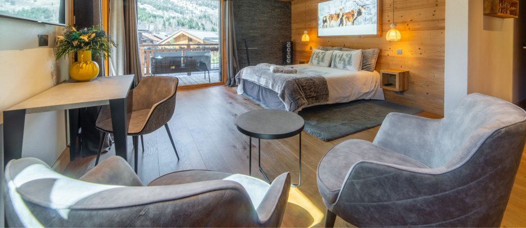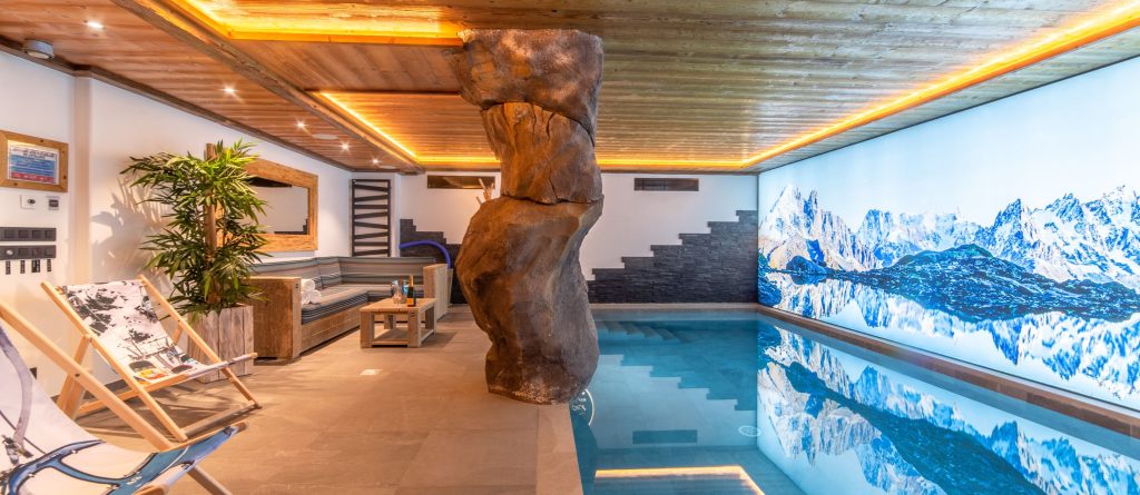 The chalet’s wellness area is a true sanctuary. Guests can unwind in the 8m x 4m indoor pool with waterfall feature, indulge in the jacuzzi, sauna or hammam, or enjoy bespoke treatments in the massage and beauty rooms. A tea lounge provides a quiet space for recovery, while a fitness area with cardio machines caters to those who want to stay active.
