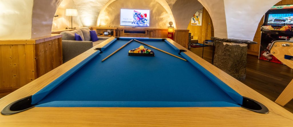 Entertainment is equally abundant, with a dedicated playroom for children, teens, and adults, featuring billiards, table football, pinball, darts, flat-screen TV, gaming consoles and a selection of board games.